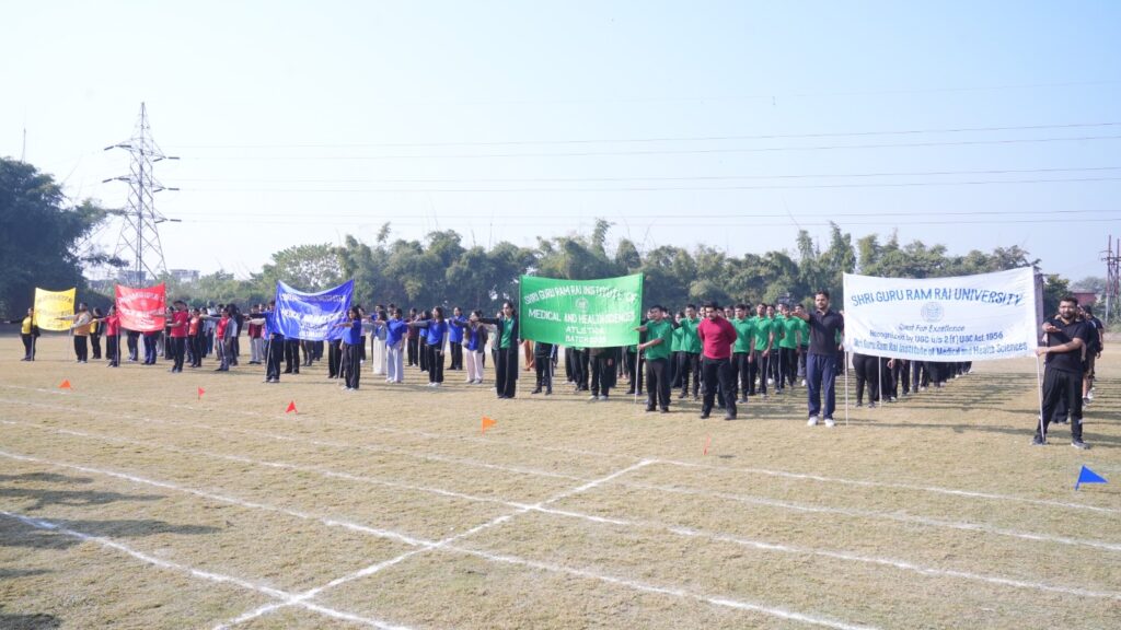 इस अवसर पर श्री गुरु राम राय इंस्टीट्यूट ऑफ मेडिकल एंड हेल्थ साइंसेज के प्राचार्य डॉ. अशोक नायक, प्रमुख चिकित्सा अधीक्षक, श्री महंत इन्दिरेश अस्पताल डॉ. अनिल कुमार मलिक तथा स्पोर्ट्स कमेटी के चेयरमैन डॉ. संजय साधु सहित विश्वविद्यालय परिवार के कई सदस्य उपस्थित रहे।